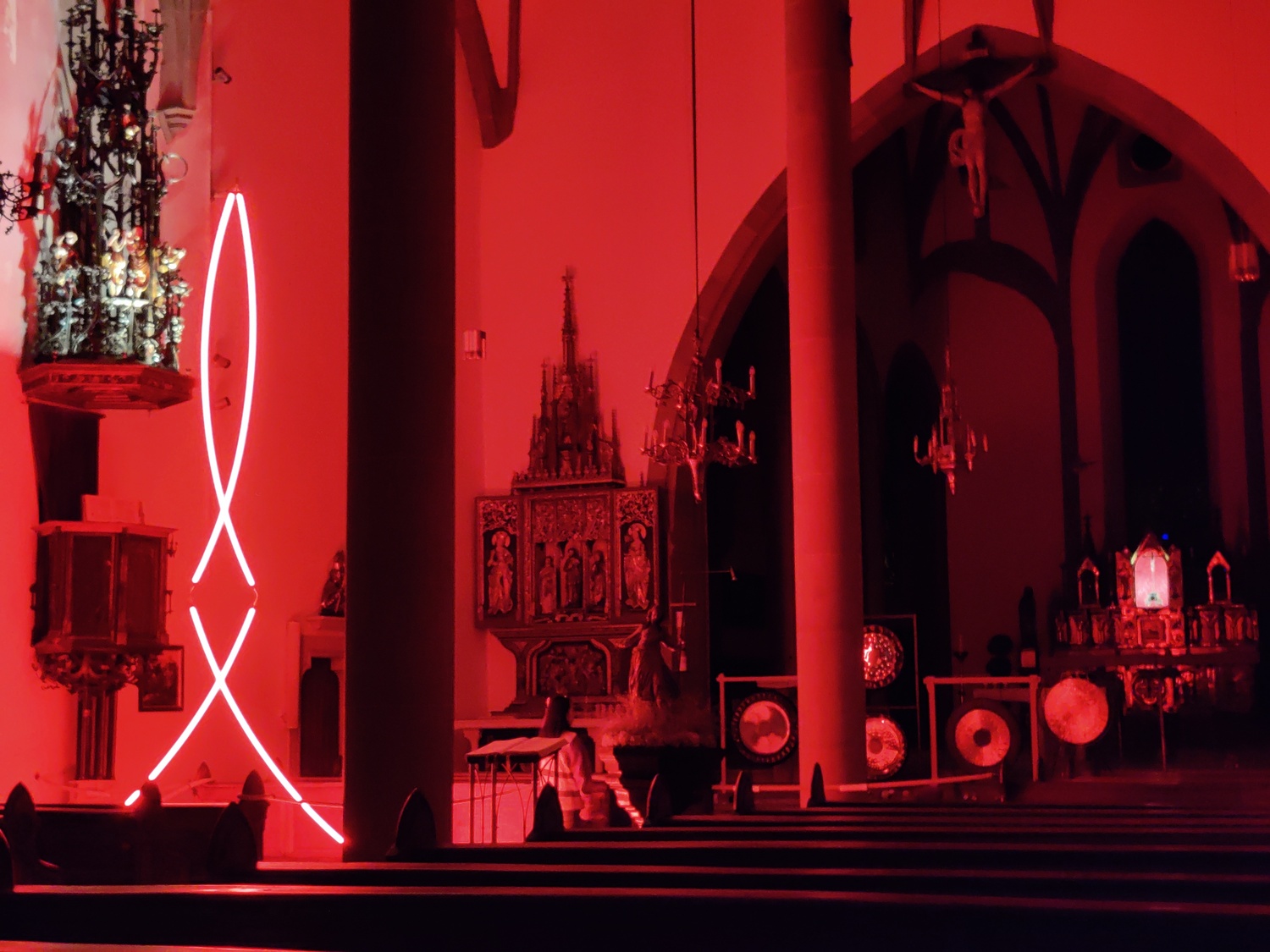 Umrahmt wurde die Ausstellung jeden Abend durch ein besonderes musikalisches Programm. Karin Amann verzauberte die Zuhörer mit Klängen ihrer unterschiedlichen Gongs und anderen Naturinstrumenten. Die Junge Kirche sorgte am Freitag für ein abwechslungsreiches Musikprogramm und den Abschluss bildete Elias Veit mit modernen Orgelimprovisationen.