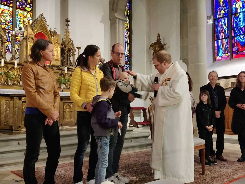 Am Vorabend der Erstkommunion konnten wir dann ein ganz besonderes Fest feiern. Bei der Einstimmungsfeier wurden drei Kinder getauft. Mit der Taufe gehören wir auch zur Gemeinschaft der Kirche. Das wird dann besonders deutlich, wenn wir dieses Fest wirklich gemeinschaftlich feiern. Es war schön, bei dieser besonderen Feier dabei sein zu dürfen.