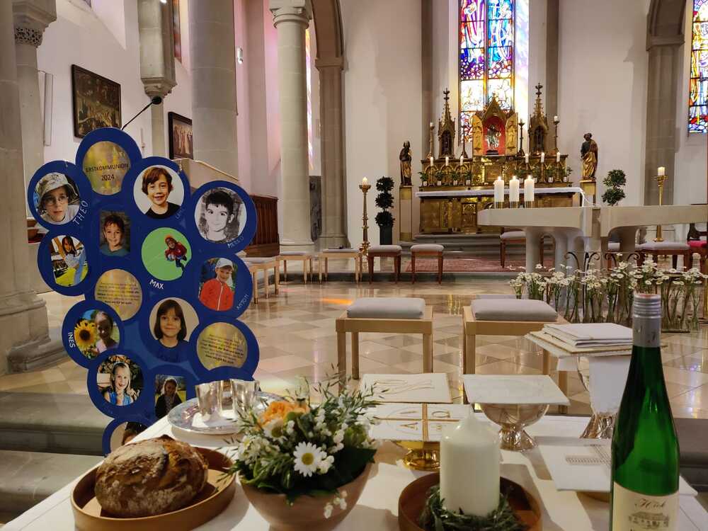 Am 28. März haben wir gemeinsam das Herzstück der Erstkommunionvorbereitung gefeiert. Das letzte Abendmahl. Bei dieser Feier hat Jesus seine Jünger beauftragt, immer wieder Brot und Wein miteinander zu teilen und dabei an ihn zu denken. Dann wird er immer selbst Teil dieser Feier sein. Da im Brot und im Wein - jeden Sonntag.
