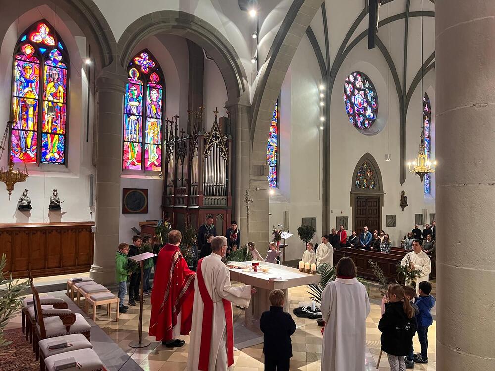 Auch am Palmsonntag waren die Erstkommunionkinder mit eingebunden. Sie haben mit anderen Kindern gemeinsam den Esel, auf dem Jesus in Jerusalem eingezogen ist, von der Johanniterkirche in den Dom getragen und auch die feierliche Familienmesse mitgestaltet.