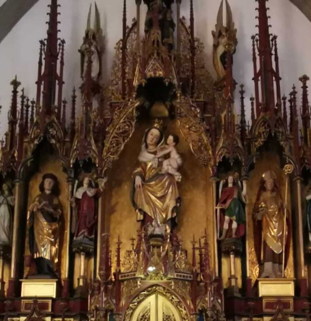 The carved ornamental attachment above the high altar depicts a Madonna and Child with Saint Anne (1494) in its middle. The shrine figures are Baptist John and John the evangelist. In the predella is an image of the veil of veronica, held by two floating angels. A graving by Albrecht Dürer served as model for this composition.