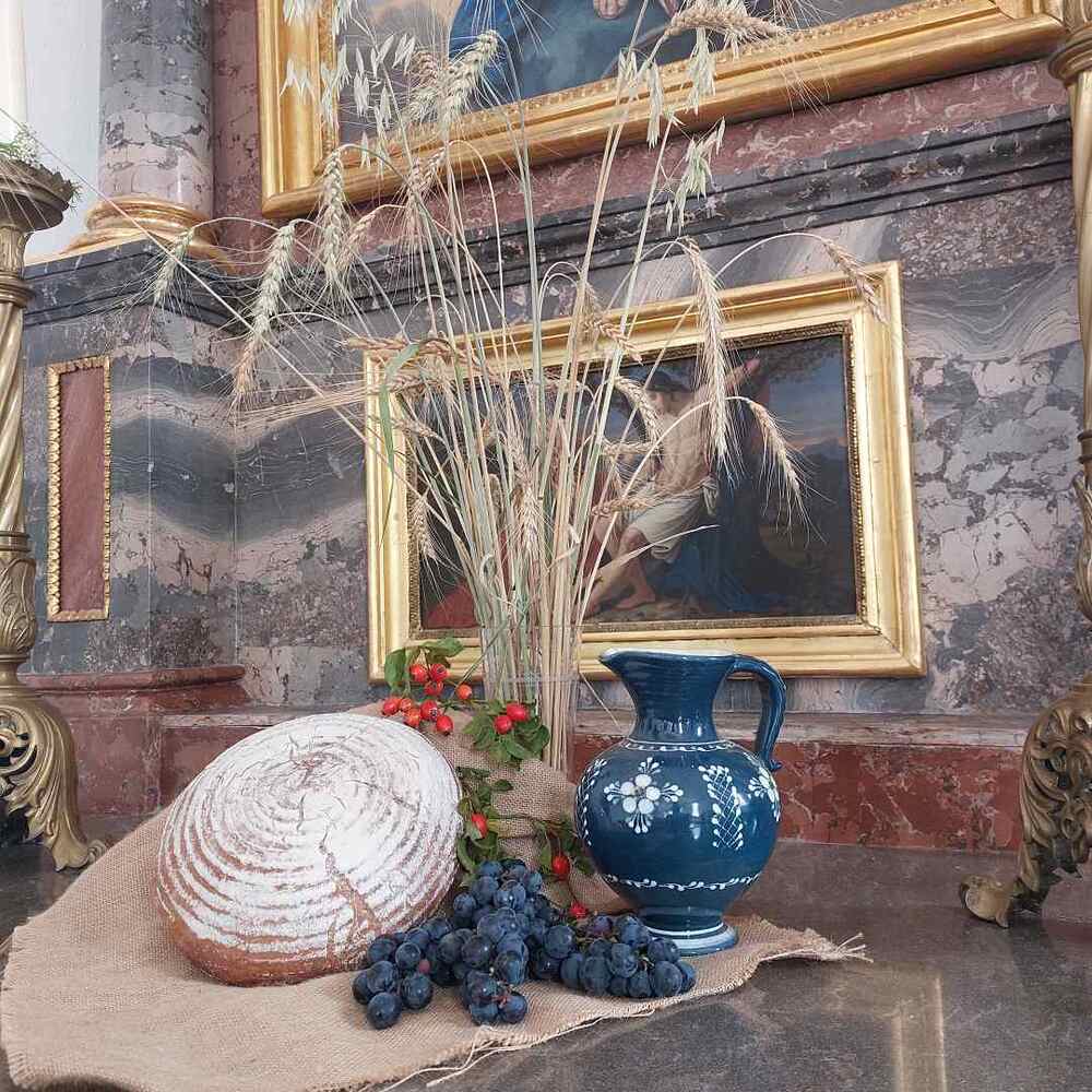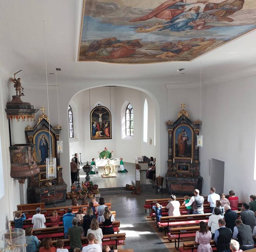 Am Sonntag, 24.09.2023, feierte unsere Pfarrgemeinde in einer von den Bäuerinnen prachtvoll geschmückten Kirche Erntedank.